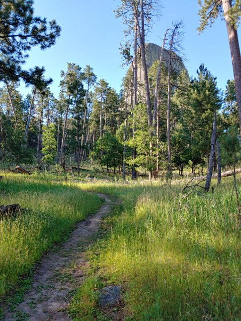 There’s another trail you can drive down from the main parking lot which is also worth your effort to grab a more distant view of Devil’s Tower. All told, I’d put in 4.8 miles on these side trails before taking a hypothetical victory lap mile around the Tower Trail again. I felt so cleansed afterwards, even with the dirt, sweat and dried blood upon me.