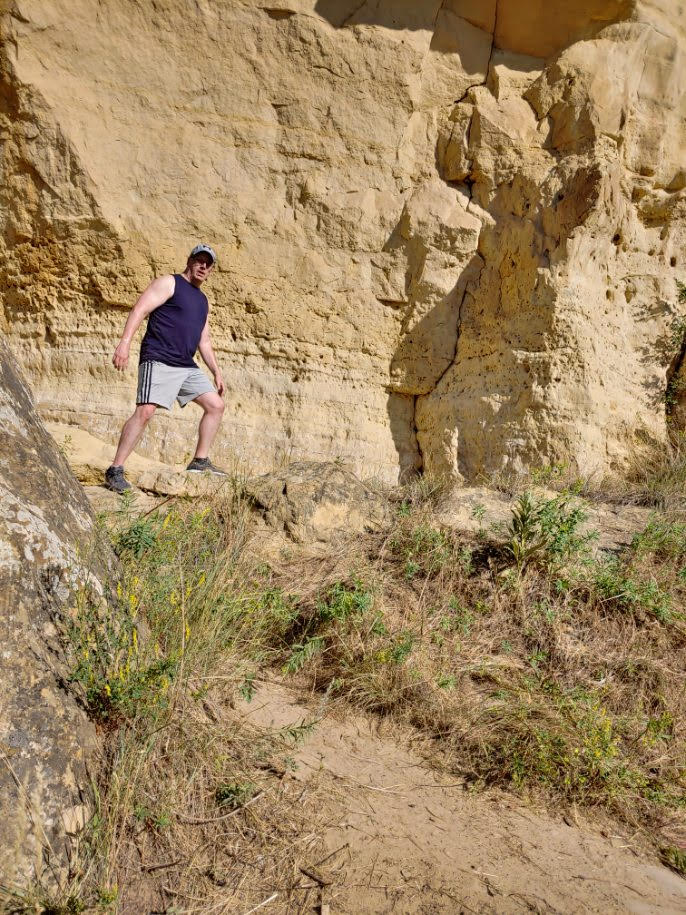 Coming through the clearing as I resumed my run, the trail became craggier as the elevation dipped. I kept my eyes peeled with the mount to my back, because something in my sixth sense made me aware I’d come into a place of significance, something you wouldn’t know unless you’d taken the time to hit this trail drifting from the tower. I paused my running app again and spun around, feeling the height of excitement jack my heartbeat even higher. I remember the thud in my chest once I put it all together. I was on the exact path which Richard Dreyfuss, Melinda Dillon and Josef Sommer took in their ascension of Devil’s Tower in Close Encounters of the Third Kind right before the crop-duster ‘copter rolled in.