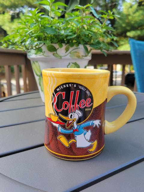 My trusty Donald Duck coffee mug purchased at Disney World, Florida in 2010. The classic Donald, circa the 1930s and ’40s. I had to have it, along with a can of Mickey’s “Really Swell” Coffee, which was then…really daggone swell! I have a good handful of coffee mugs, but even TJ pulls Donald down for me automatically when fixing me a tea or before I set up my coffeepot. The mug is out of circulation, and I thank myself almost every time I use it for getting it while I had the chance.