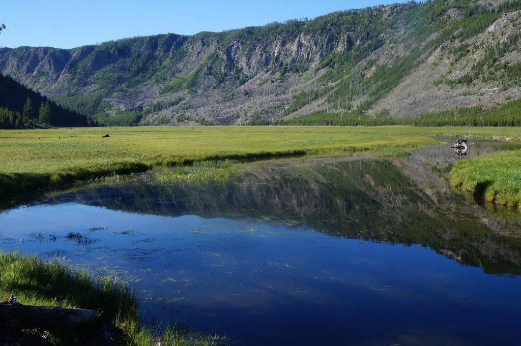 Below is a hefty set of pictures I hope will enlighten and inspire you to see this ecological wonderland for yourself. Just don’t be that idiot, the one who thinks just because a bison or antelope are within reach of the road you have all the time in the world to scooch up to them for a closer shot. Keep inside your car if you see a buffalo roadside. They have the right of way, not you, always keep that golden Yelllowstone rule in mind. I’ll never forget the terrible excuse for a father who took his two young children far into the open prairie close to a grizzly cub wandering about. The mass gathering sticking to roadside were all hollering at this lunatic, while I kept asking everyone in sight to be on the lookout for the cub’s mama. I was panicking for that reason, since there would’ve been no time for the stupid clown to hightail back to safety with his kids should the mother griz emerge, as she soon did. Fortunately, the park rangers were put on alert and got the humans to safety as the cub darted away once his mama found him.