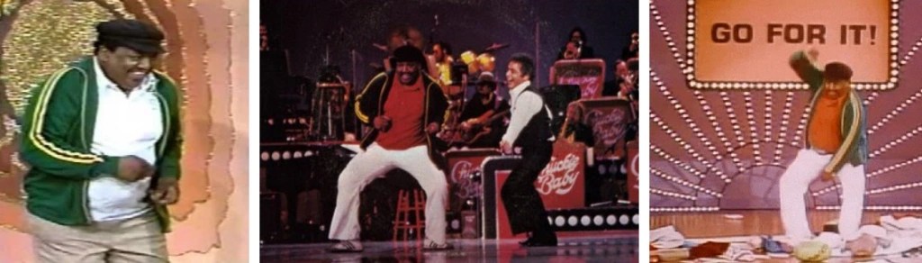 Patton, the first African American member of the International Alliance of Theatrical and Stage Employees, was more than a Gong Show stagehand. Barris utilized all of his stage crew along with his ensembles in bit moments and various tomfoolery. None more hilarious and joyous than Gene Gene’s fellow hands tossing trash and flotsam at him while he shucked and moved, tossed one hand in the air while all but giving his crank a, well, crank…