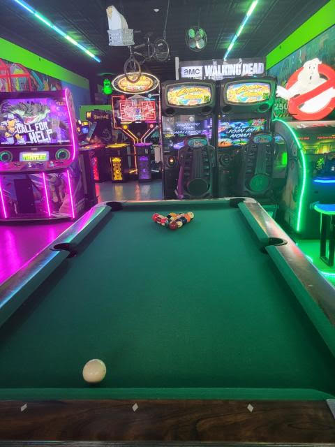 What’s great about Timeline other than recreating all that neon piping in certain spots is planting those old classics you loved, Frogger, Tapper, Tron, Karate Champ, Dig Dug, Dragon’s Lair, like sentries alongside a bunch of throwback video games you never knew existed then. Even those ’90s goodies, multi-player smash-up games featuring X-Men, Teenage Mutant Ninja Turtles and The Simpsons. There are rows of pinball machines, hoop shooting games you can actually sink on repeat, Skee-Ball, a pool table, air hockey, even a station for the youngbloods with hand shaped chairs for them to lounge on. Those being plugged to Xbox and PS5. It’s the ultimate hangout, no matter your age.