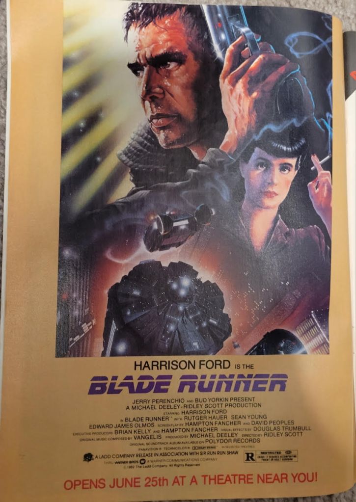 Funny to think I was delving into sci-fi softcore porn but denied entry to a hard-edged sci-fi noir film. Seeing my dismay, however, my grandfather bought me a Blade Runner movie magazine as a consolation prize.