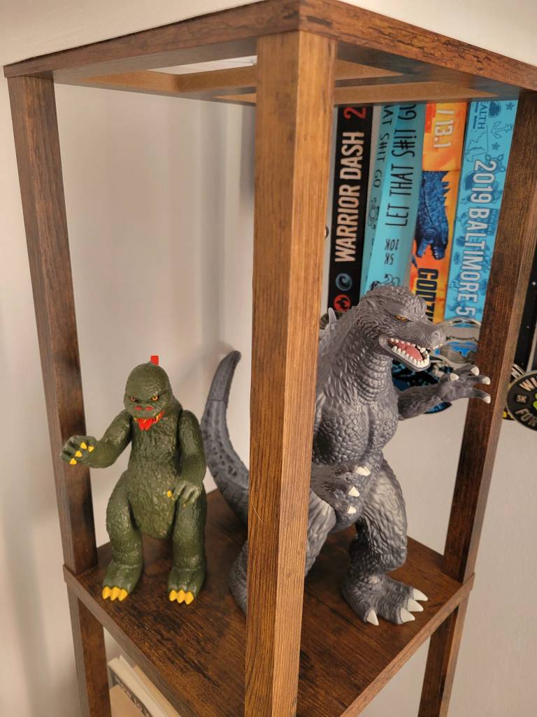 TJ is being such a good sport with all this Godzilla chicanery I am putting her through, but I got this at an absolute steal, and it does all that the original does except roll on its feet. I am beyond nerdy content.
