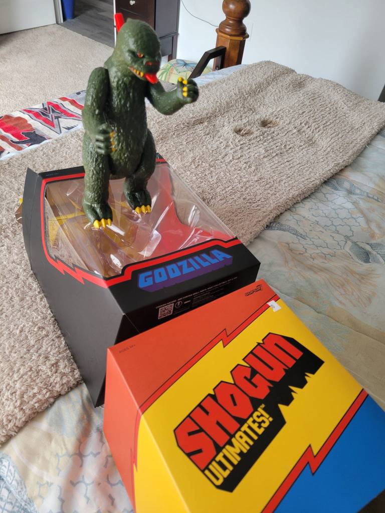 I thought about getting that replaced lately as well until Godzilla: Minus One drove the collector market out of its mind with asking prices of a grand to $1,800.00. Lo, comes along a half-sized replica of my beloved Godzilla toy from Super7 and their Shogun Ultimates line.