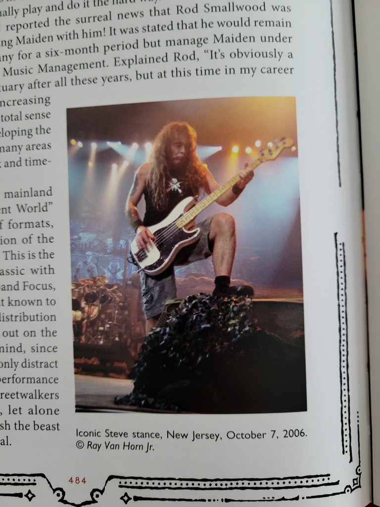 This is one of the proudest moments of my writing life. I have my copy of Martin Popoff’s monstrous Iron Maiden compendium, Hallowed Be Their Name: The Unofficial Iron Maiden Bible and feeling so grateful to see 13 of my Maiden live photos in the 20th chapter, “A Matter of Life and Death and Flight 666.” Also sections of an interview I did with Nicko McBrain at the same album cycle on pages 132, 421 and 480.