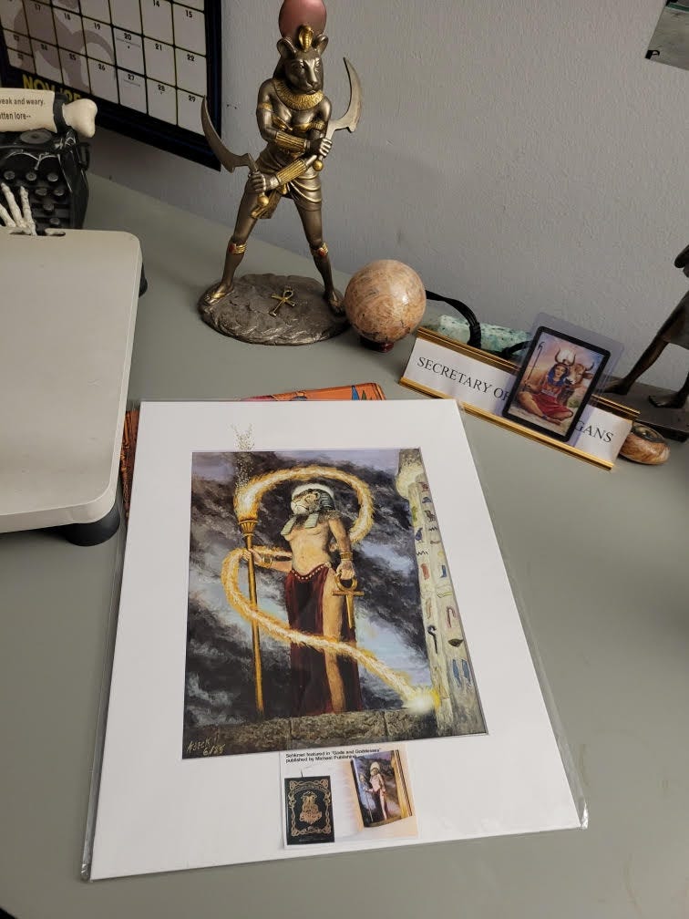 I sold a few books during the autograph session and had fun yammering for the hour with Errick Nunnally. The only thing bought at the con this year was after placing a bid on a gorgeous print of Goddess Sekhmet, my incredible wife surprised me by snatching it for me when I won that auction.