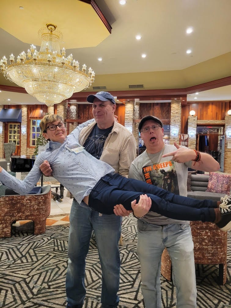 Suffice it to say, getting to hang with the incomparable Mia Dalia and her spouse, Chelsea all weekend was extra special and with my wife joining us, we’ve become quite a set of musketeers. TJ feels Mia and I have long been pals in numerous past lives and this Philcon showed that, even with my ordering wings during our hangout in the hotel bar and just learning she’s a vegetarian. We simply roasted one another in good spirits and mugged it up for the camera before getting into some deep, meaningful commiserating.