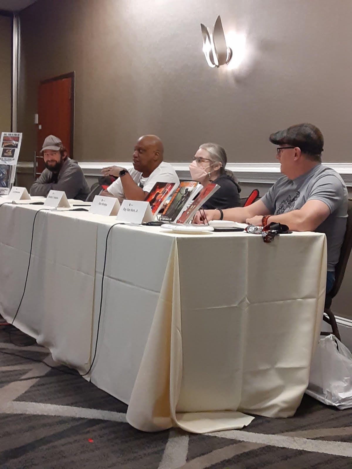 I had such a blast with my fellow panelists all weekend and was pleased to see many of the same attendees hopscotching to our panels themed on horror and comic books. James, looking at you, sir. You were at half my panels and if I was in an elevator, so were you. Thanks for buying my books, literally based on an elevator speech, lol. A few other conventioneers I wish I’d gotten to know your names, but I loved seeing your faces over and over. Especially to the well-attended 10:00 p.m. panel for Horror Through the Ages last night, y’all are rockers!